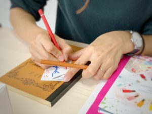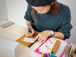 名札を作るワークでは、そのペンさばきに